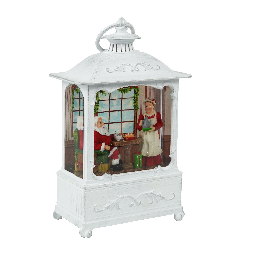 MELODY resin Santa Dinner Scene Plastic snow globe LED Water Spinning Lantern Christmas Decoration