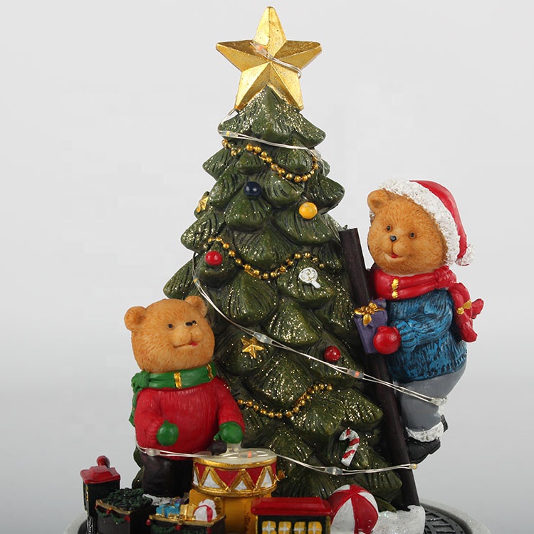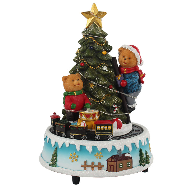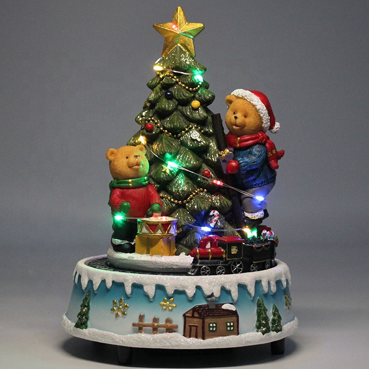 Navidad custom song Led star light bear Christmas tree scene battery train rotating music box for decor gift |