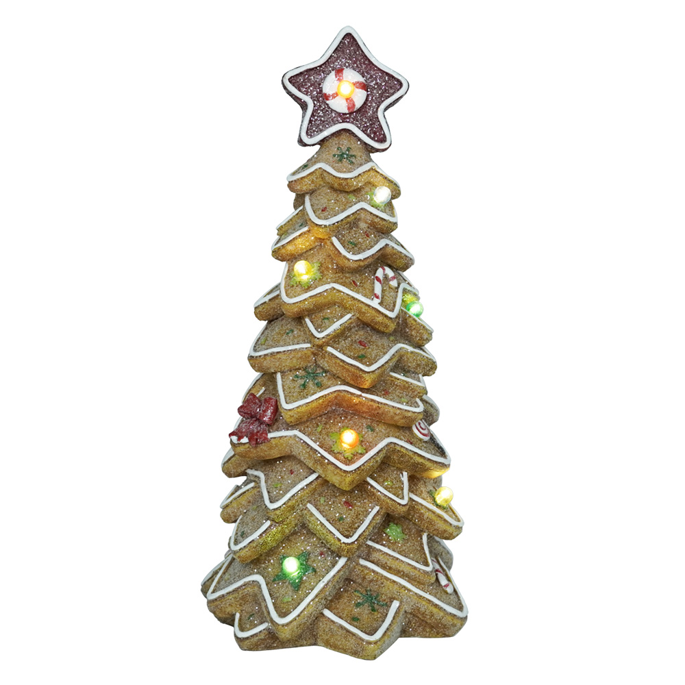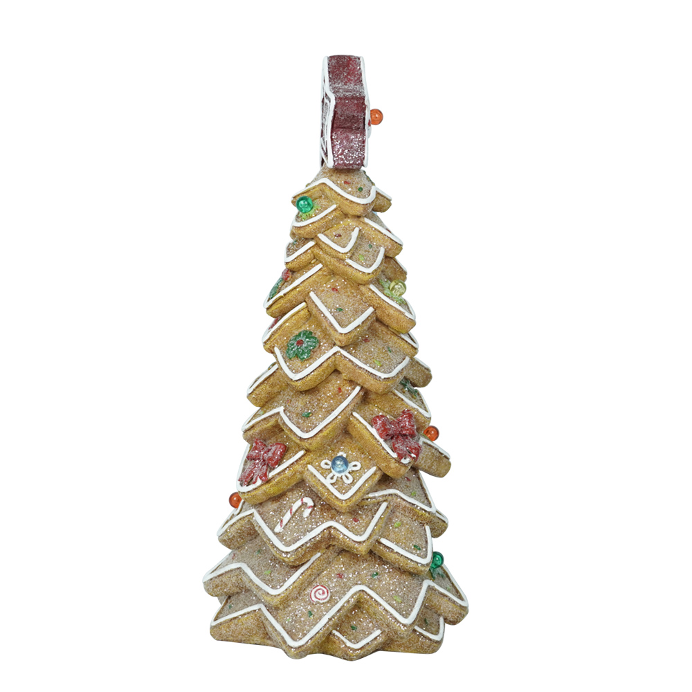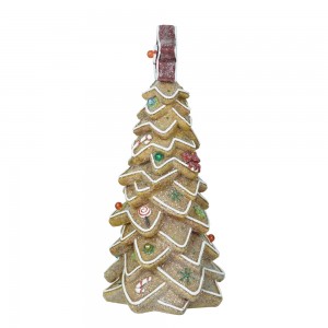2022 New arrival Christmas Decorations Handmade Resin Crafts Customized LED Christmas tree shaped Gingerbread house