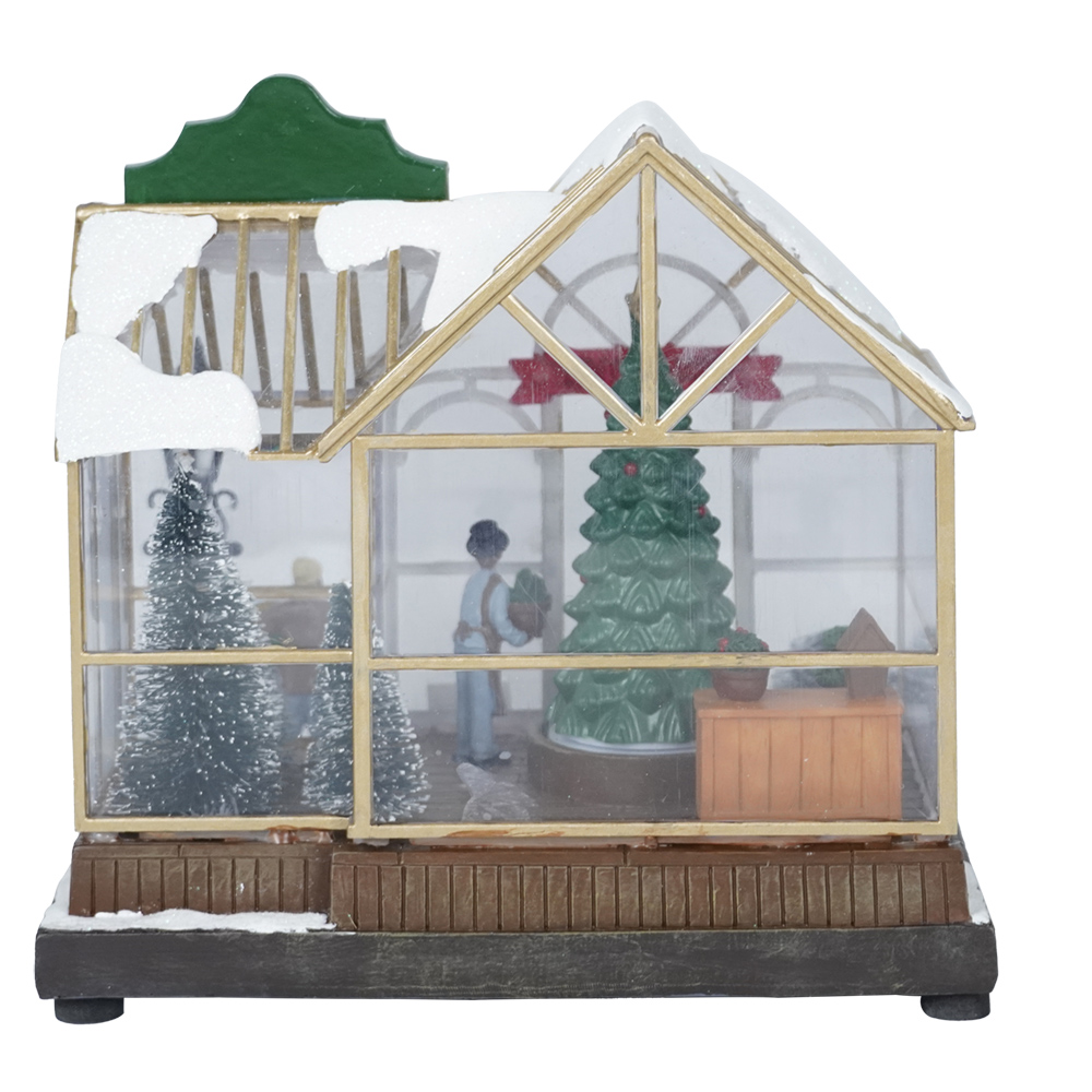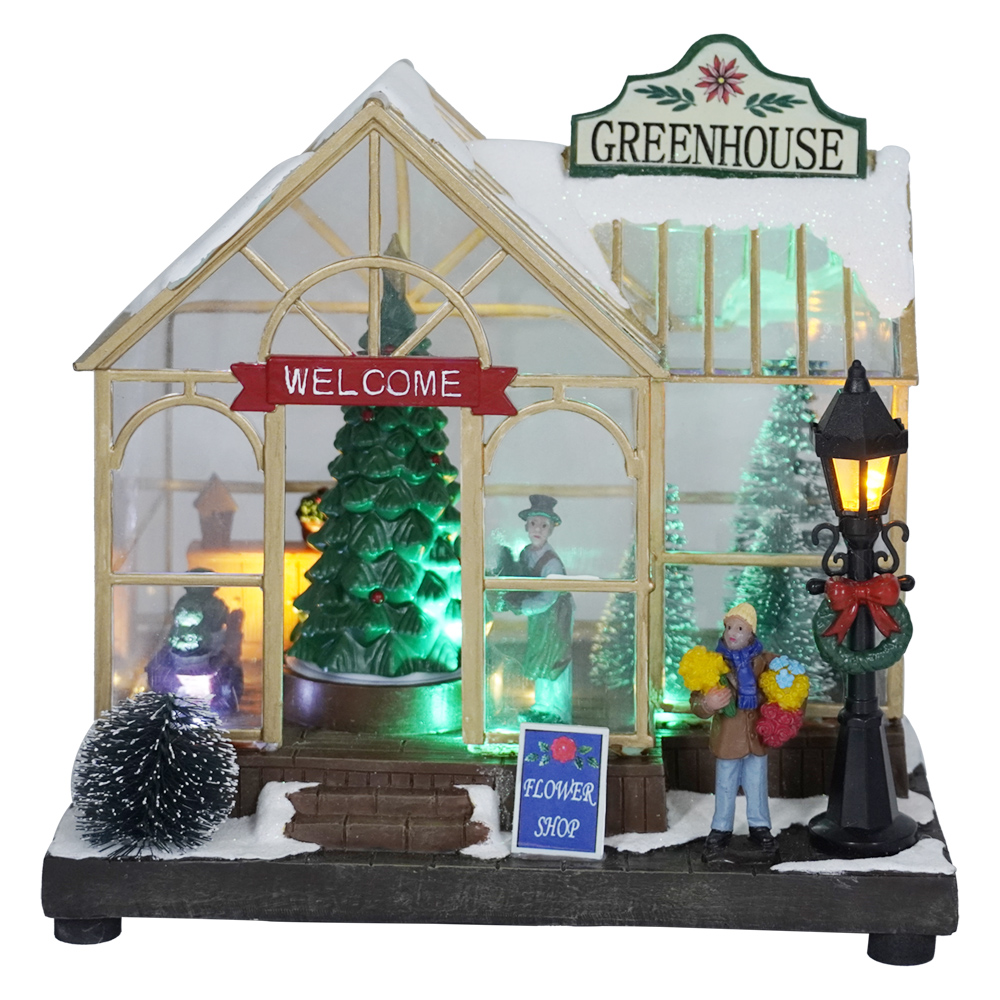 2022 New Arrival Led Music Promo Gift Diy Plastic Christmas Flower shop House Flower shop with rotating tree |