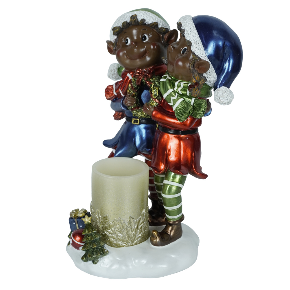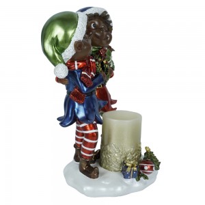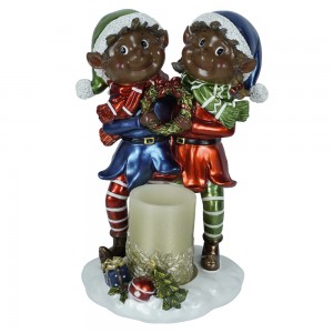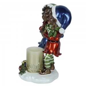 New Arrive Christmas Decorations Resin Black Elf Statue with LED Candle