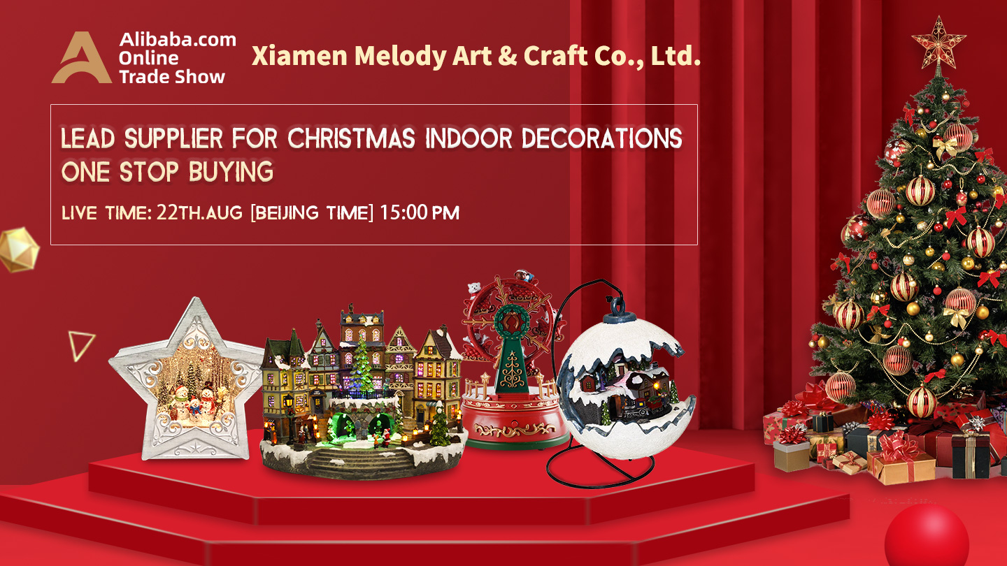 We're going to have a live stream for Christmas Indoor Decorations on Alibaba platform, welcome to watch our online show, click below picture or the link below to reach directly to our online showroom.