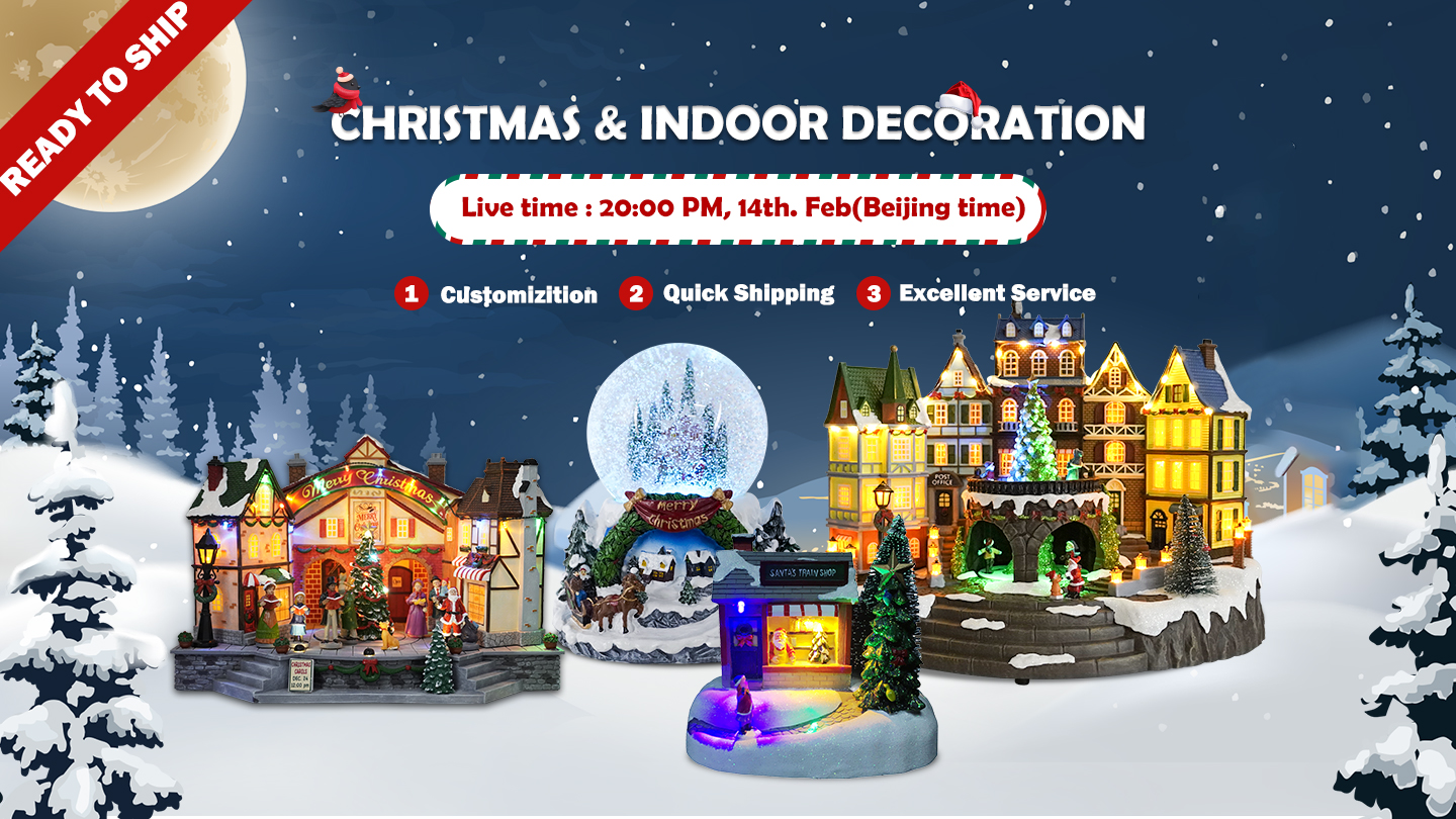 March 14th 05:00:00 AM (US time) We’re going to have a live stream for Christmas Indoor Decorations on Alibaba platform, welcome to watch our online show, click below picture or the link below to reach directly to our online showroom.