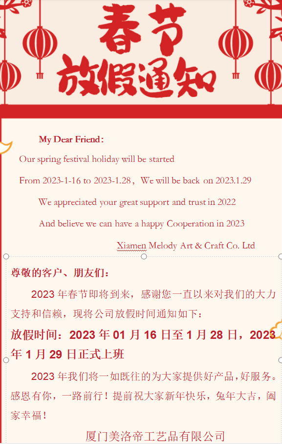 From 2023-1-16 to 2023-1.28,We will be back on 2023.1.29