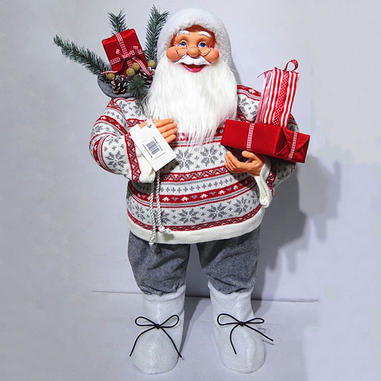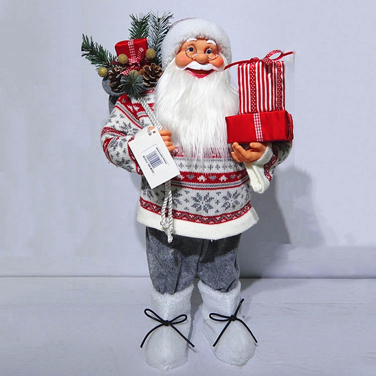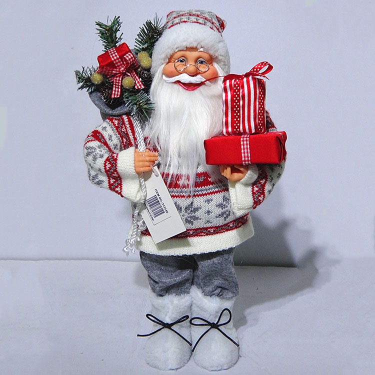 Noel 30 cm plastic European rustic style mistletoe bag Standing Santa Claus with ornament sack |