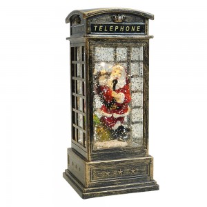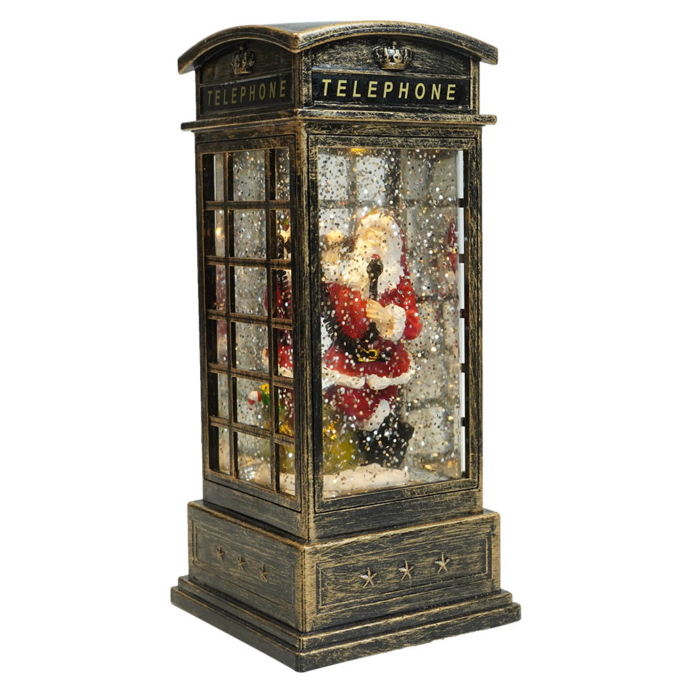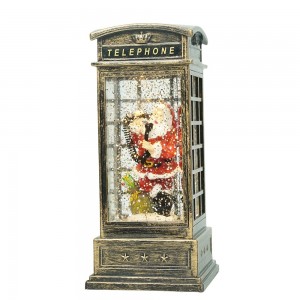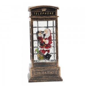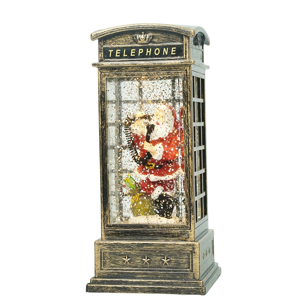 Noel Seasonal table decor Santa Telephone Booth Lantern, pre lit Led Glittering Water Spinning Christmas snow globe |