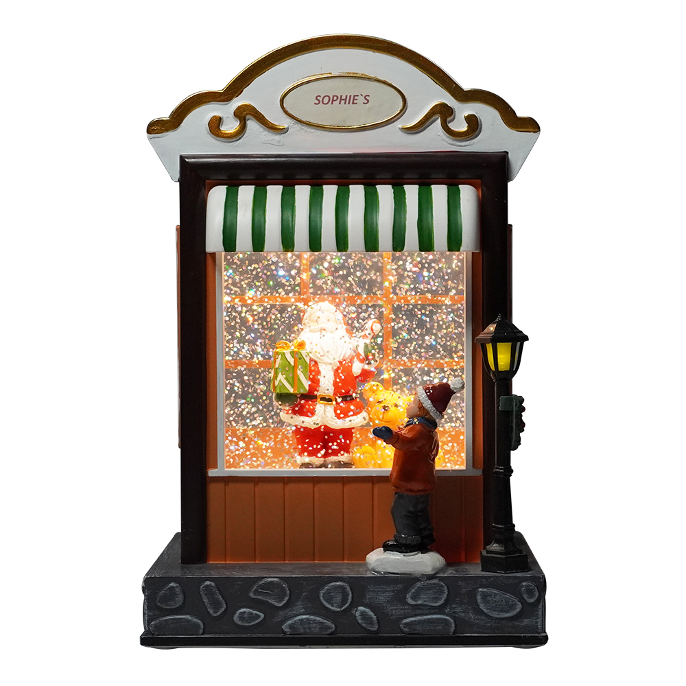 OEM new seasonal Santa workshop Musical Led Illuminated water spinning Christmas lantern snow globes |