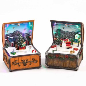| Usage | Christmas indoor decor&gift polyresin cute led decorative Christmas music box |
