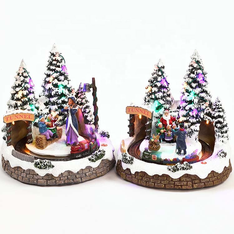 Hot sell holiday decor Polyresin musical Led illuminated Noel Xmas scene Christmas Village with movements