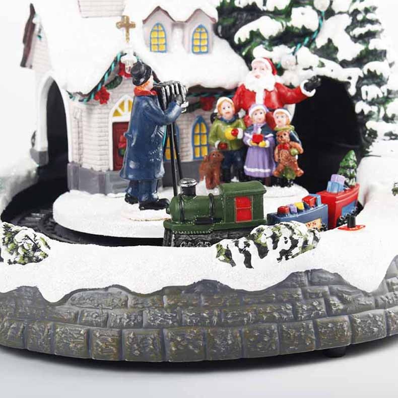 Hot sell holiday decor Polyresin musical Led illuminated Noel Xmas scene Christmas Village with movements