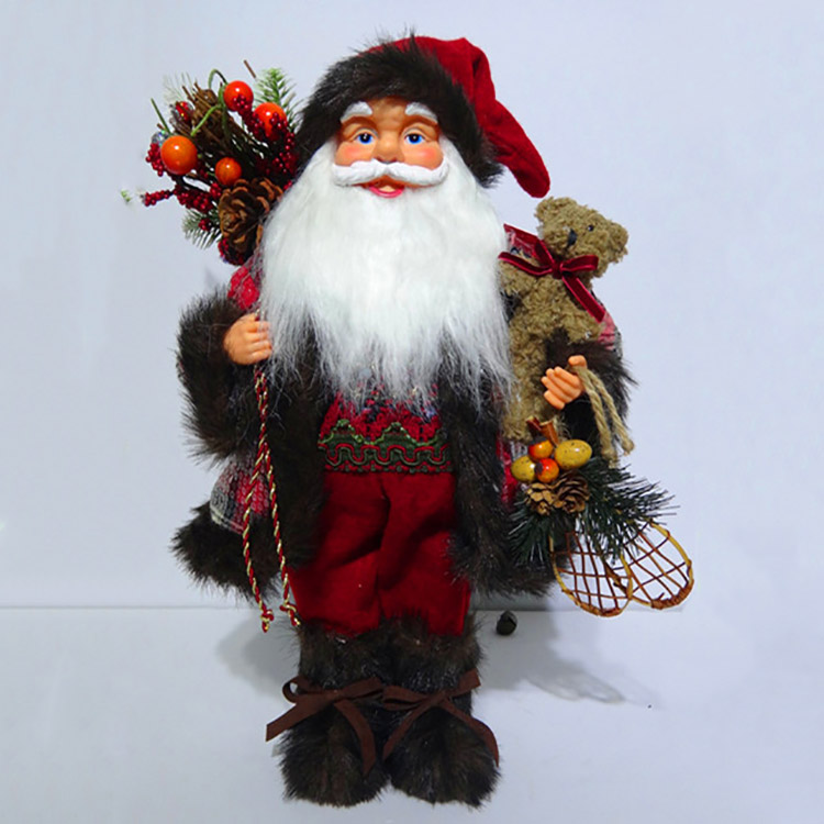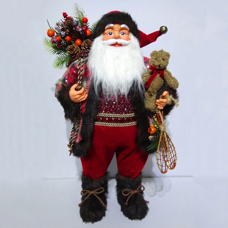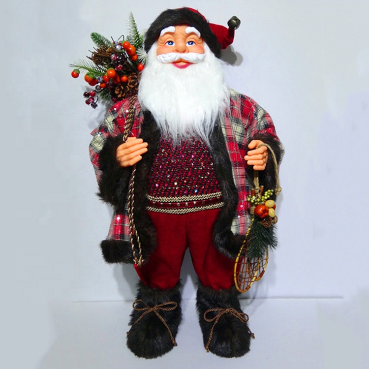 | Product Name | High Quality noel 40 cm plastic Standing Santa Claus tabletop Christmas decor in fabric cloth |