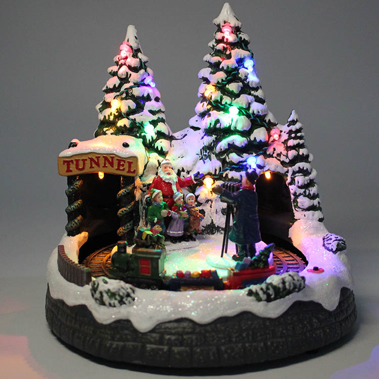 Christmas tabletop decor Led musical Xmas village house with movements