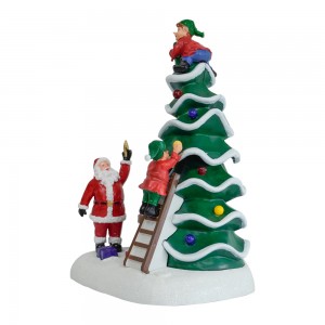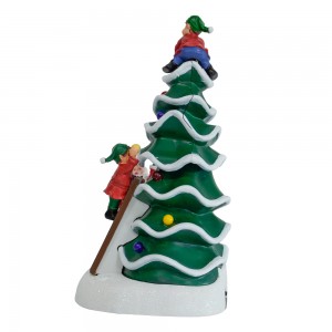 Plastic LED Musical Christmas Ornaments Animated Christmas Tree scene Mini Christmas village For Christmas decorations