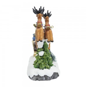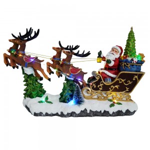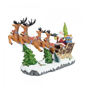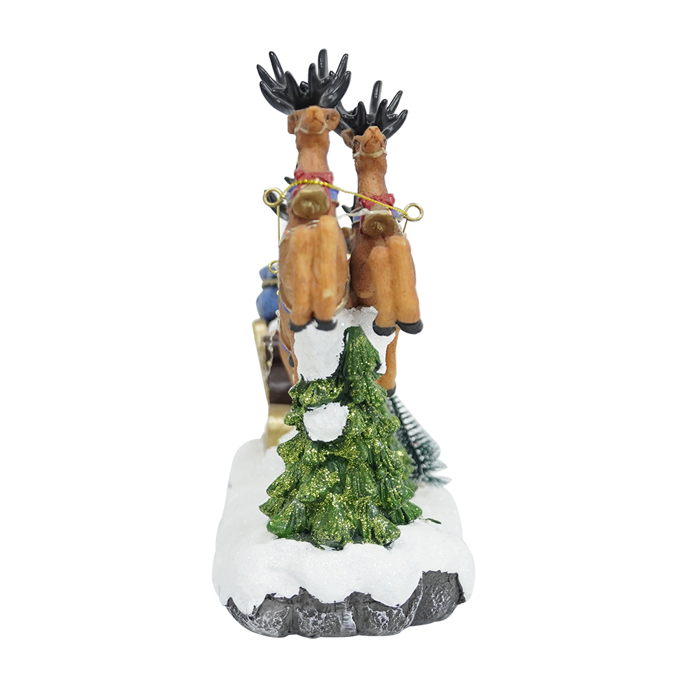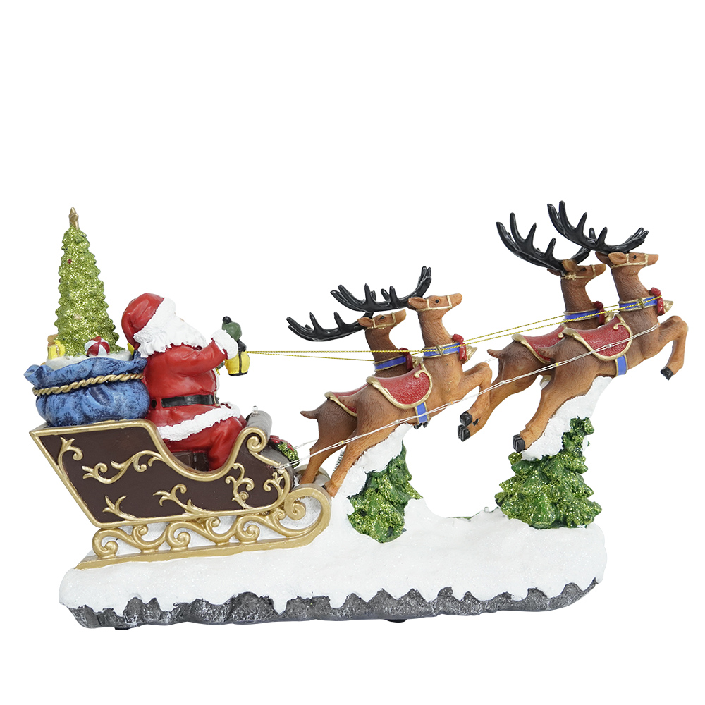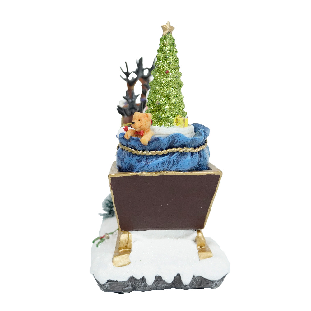 Polyresin Christmas LED Santa Riding Sleigh scene Christmas Village With Rotating Xmas Tree And Music For Christmas Decoration