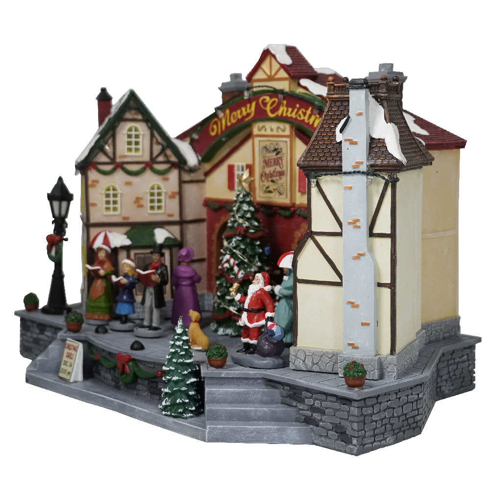 Polyresin LED Santa shop decoration big village fiber optic Christmas town houses