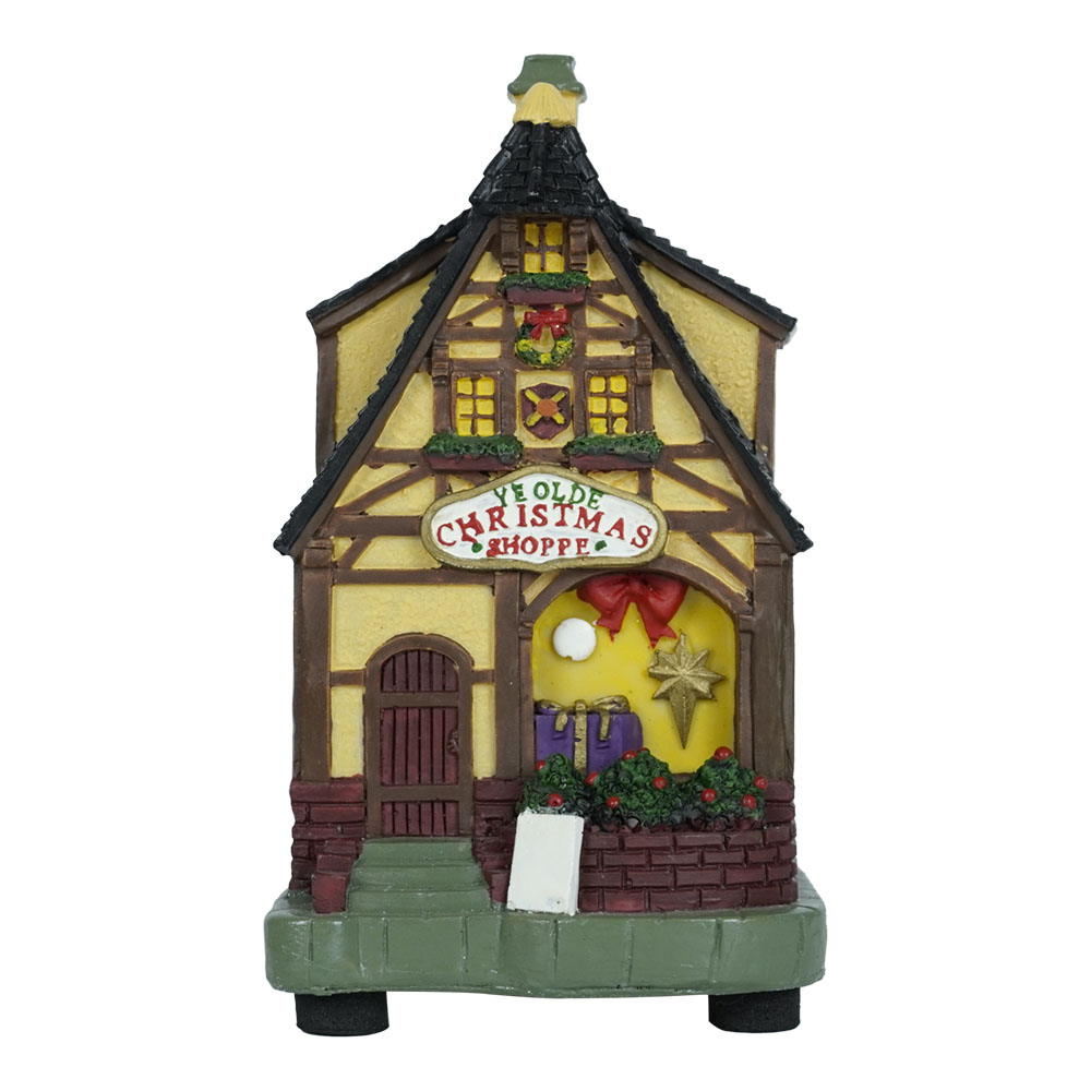 Polyresin LED Santa shop decoration village fiber optic Christmas town houses