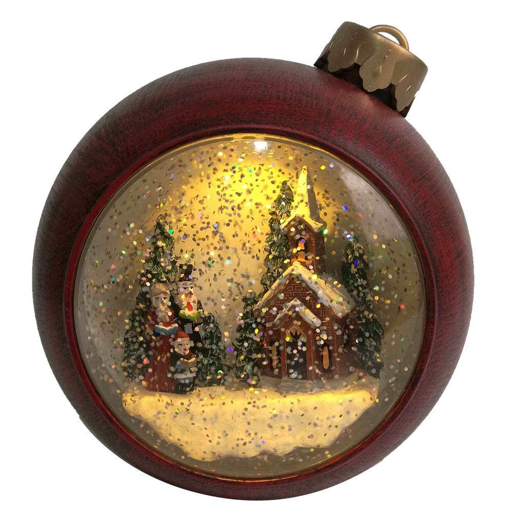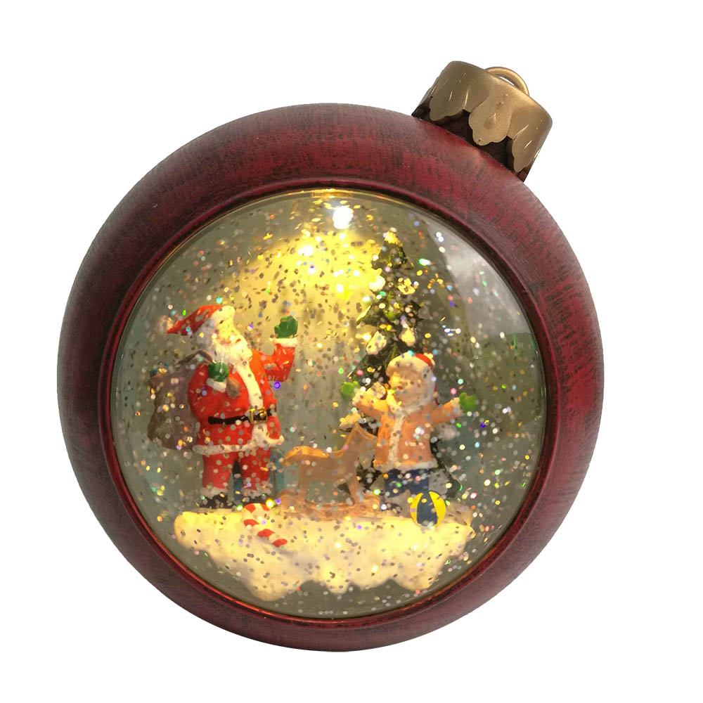 Seasonal Led light up Xmas Santa and kid scene ball shaped Christmas Swirling glitter snow globe for indoor ornament |