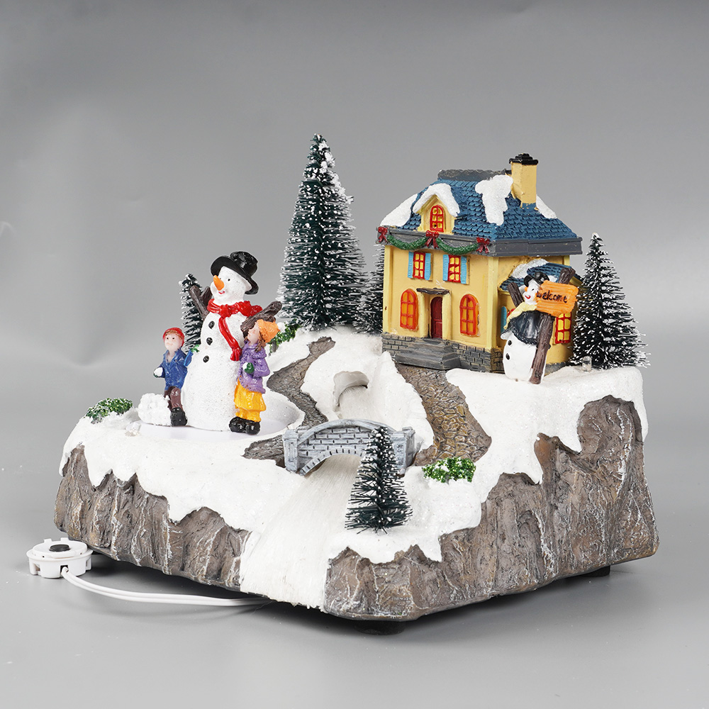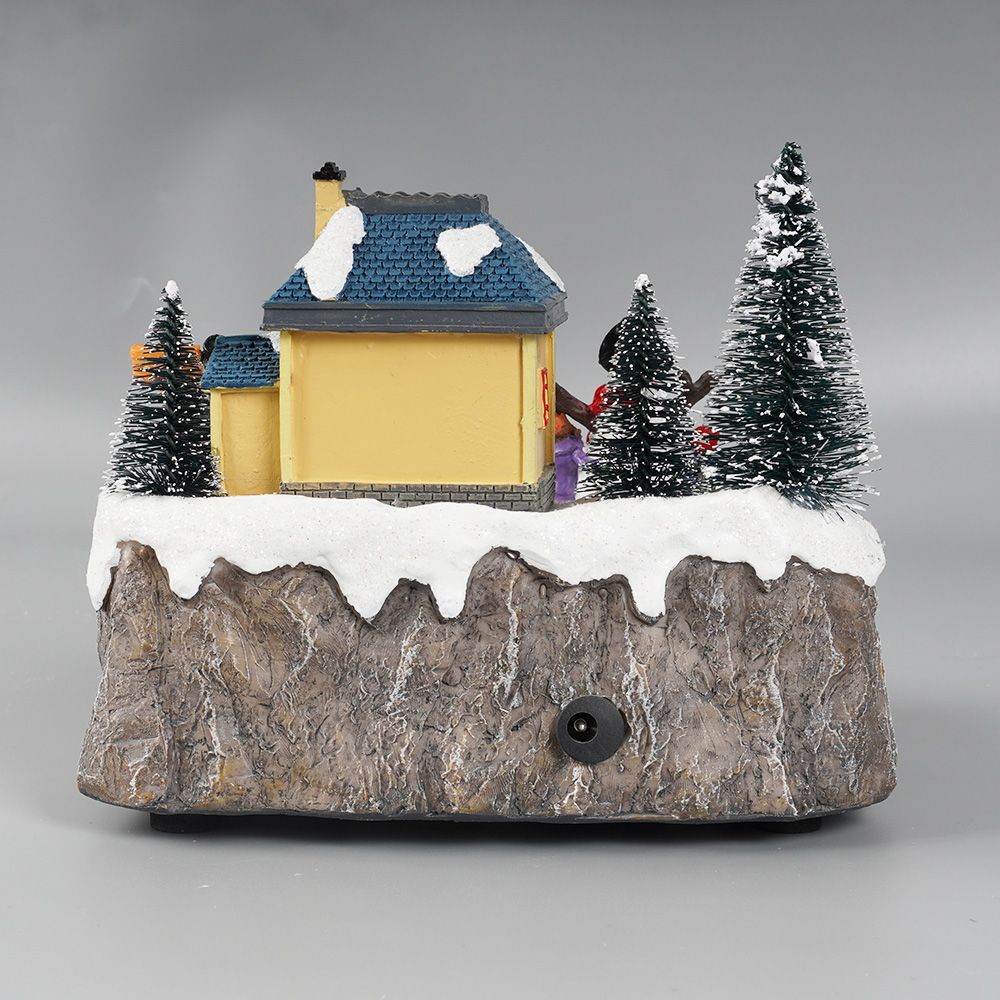 Top Suppliers Train Village Sets - Wholesale noel holiday decor Xmas scene Resin fiber optic Christmas village houses with mult color Leds lights – Melody Detail: