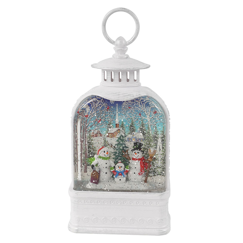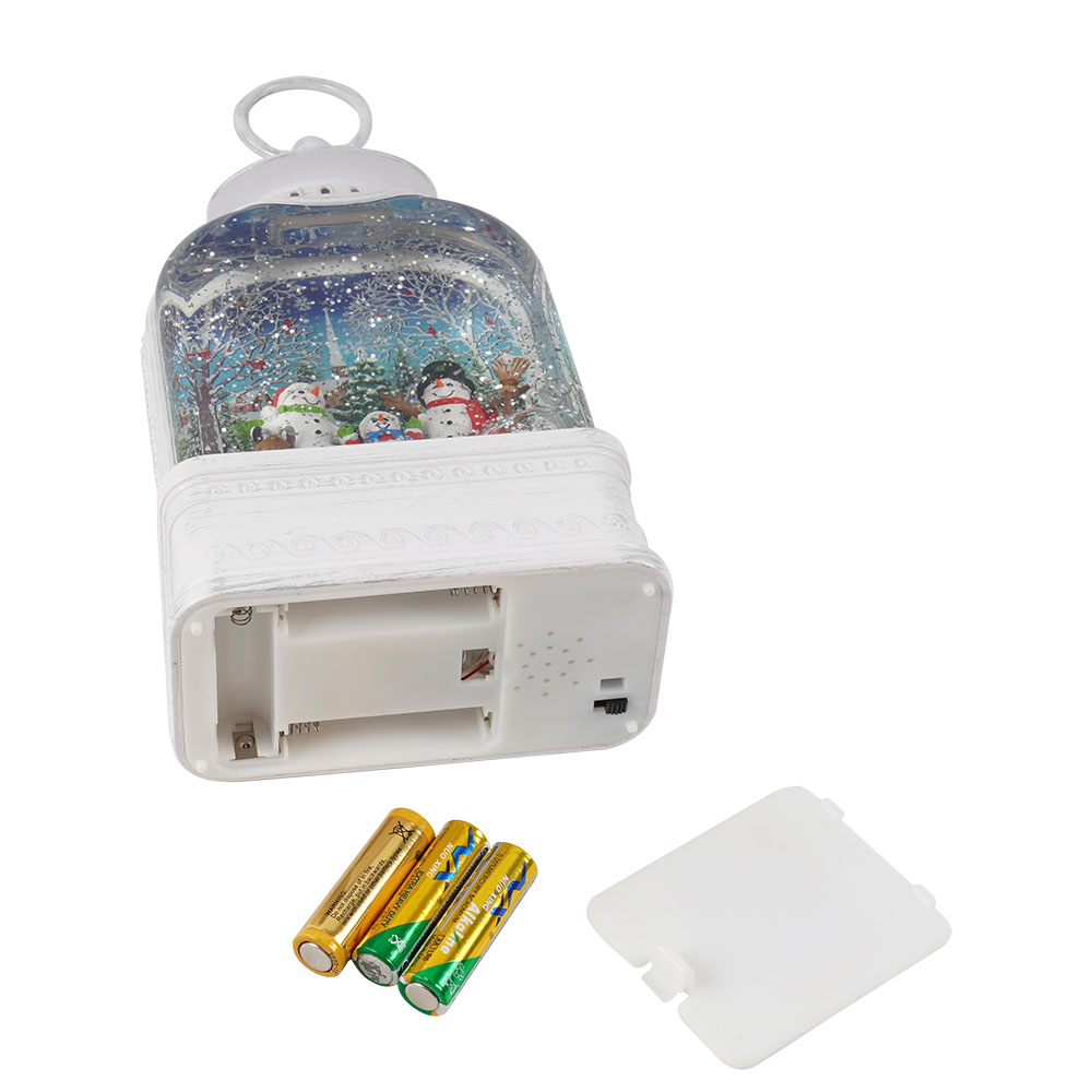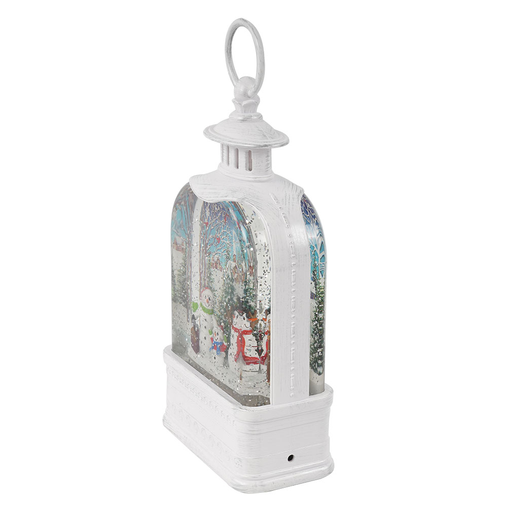 White color plastic noel Xmas snowman village scene Led water spinning Christmas lantern snow globe |