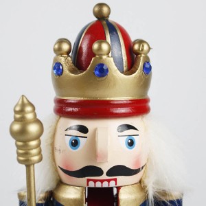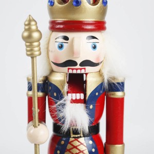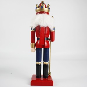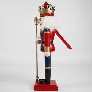 Wholesale Christmas festival decor red Uniform wooden Holding Gold Scepter Traditional King nutcracker figurine |