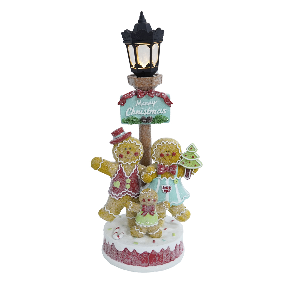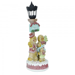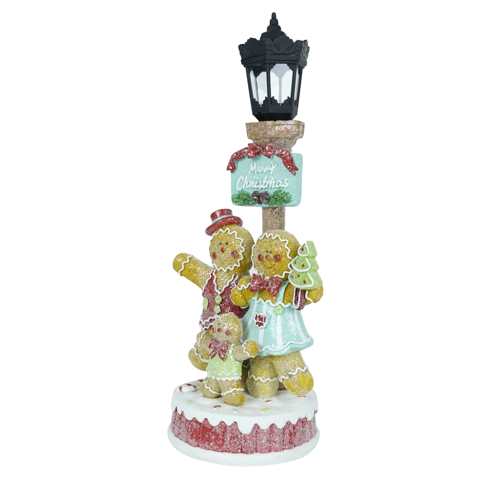 Wholesale Handmade Resin Crafts Custom Christmas Gingerbread man With Led Street Light Christmas Decoration