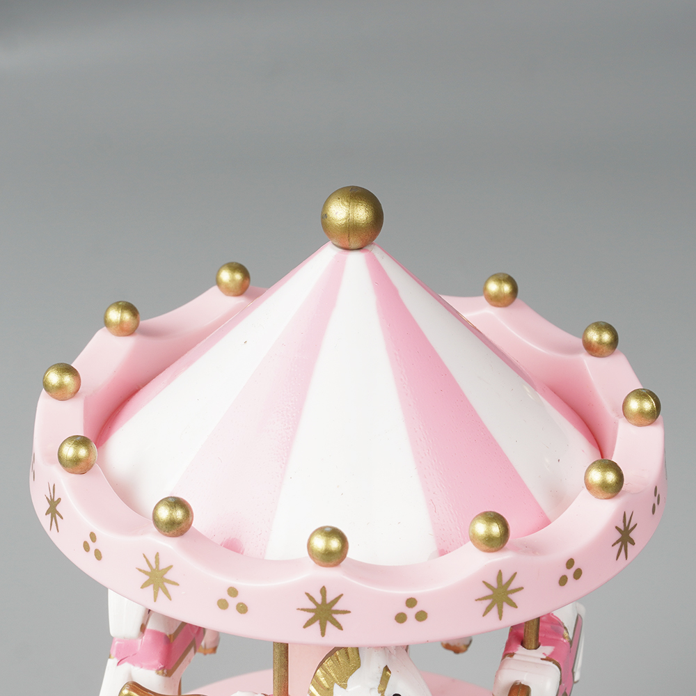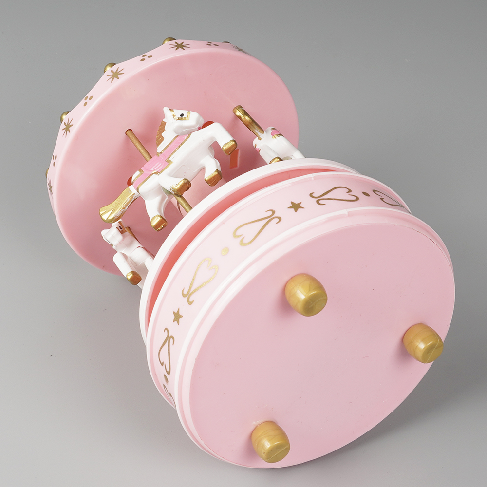 Wholesale illuminated Christmas Carrossel decor, rotating round merry go carousel music box for kid gift