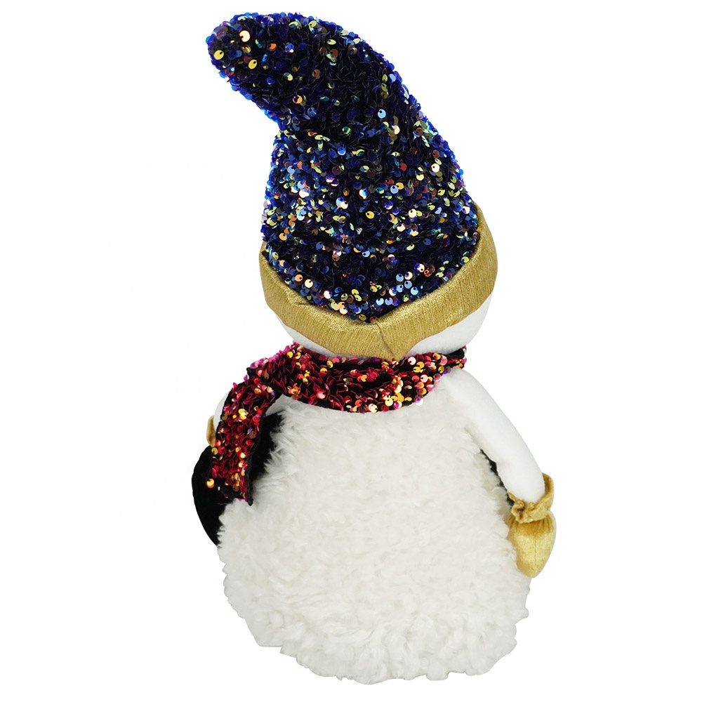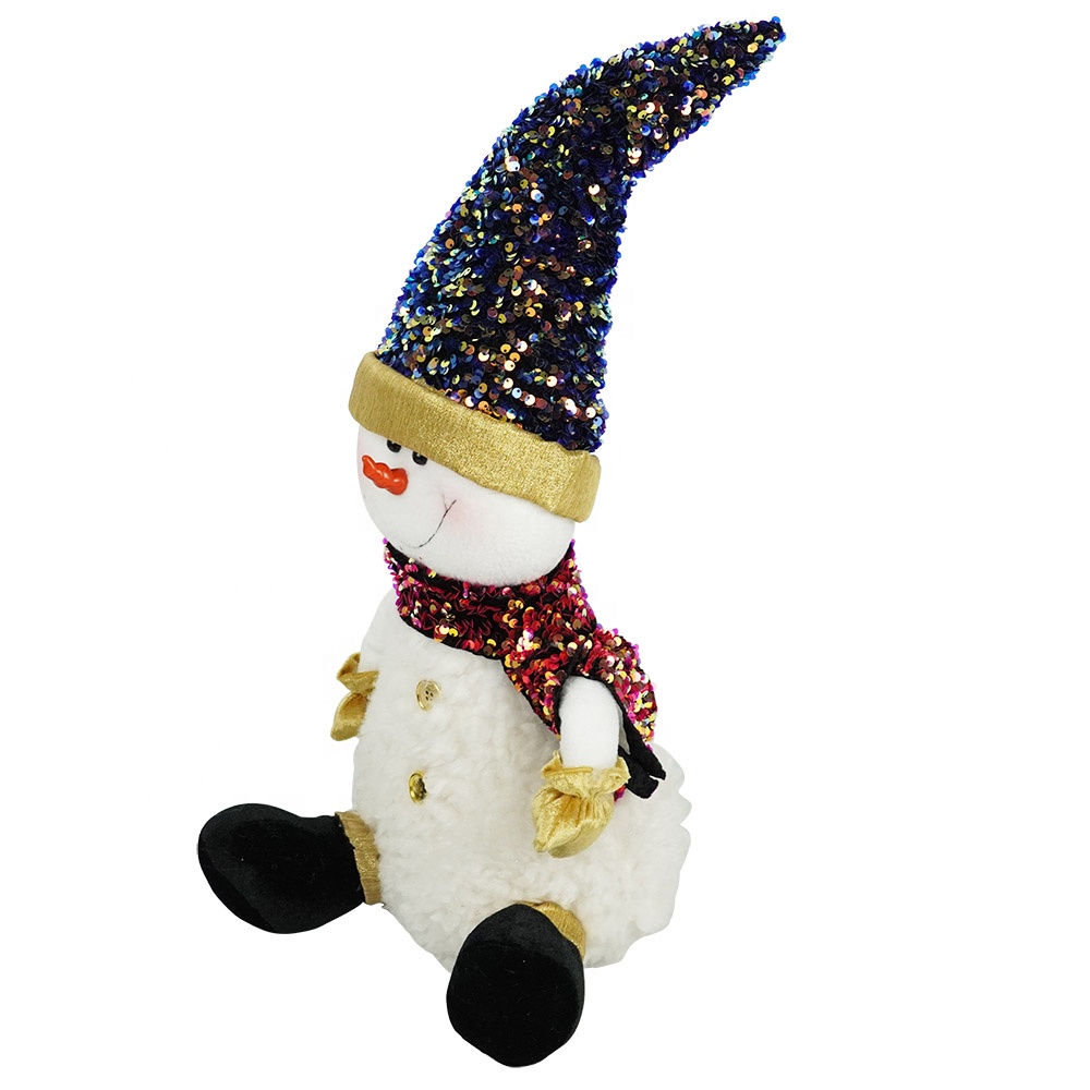 Customized small size holiday decor kids gift fabric Christmas sitting snowman with glitter hat |
