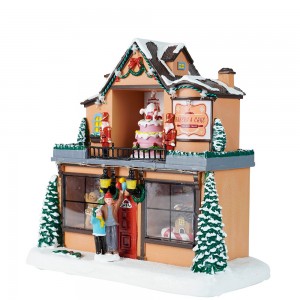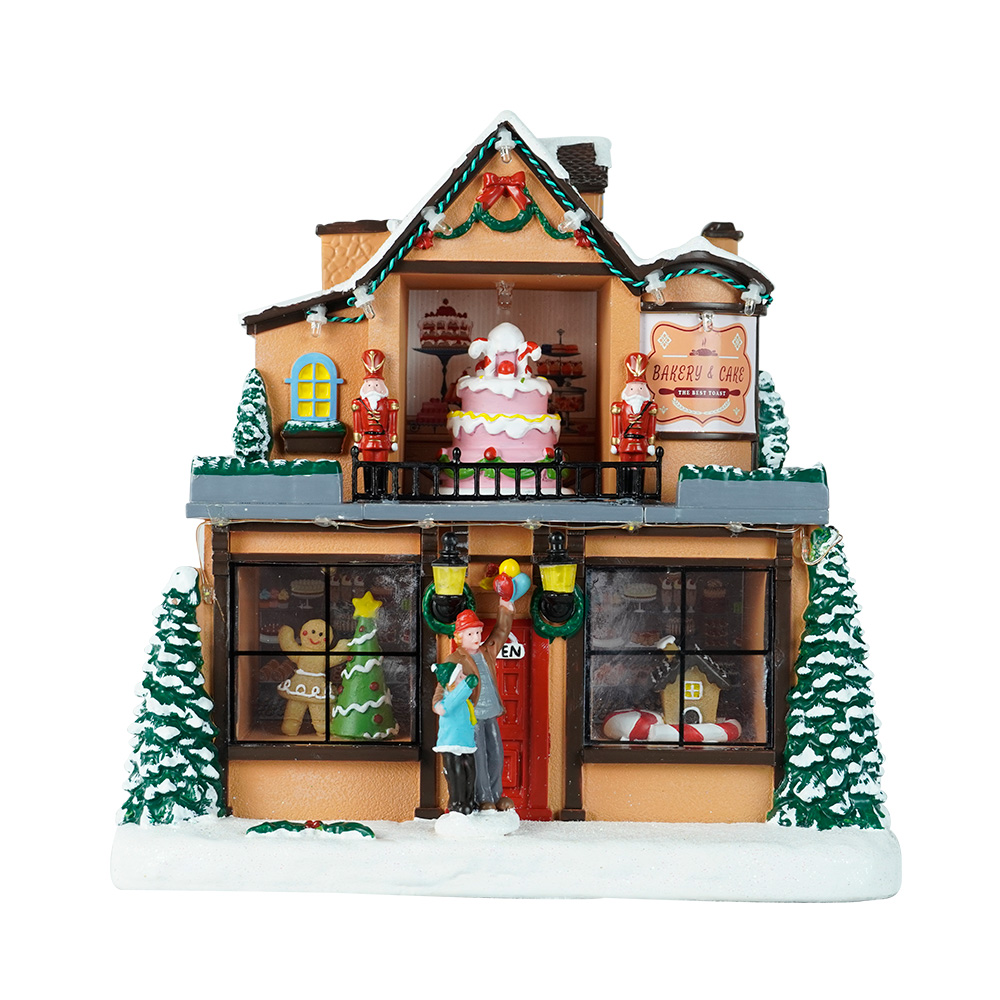 Wholesale LED light-up musical Candy shop Christmas village houses with Animated for Christmas decor and gift