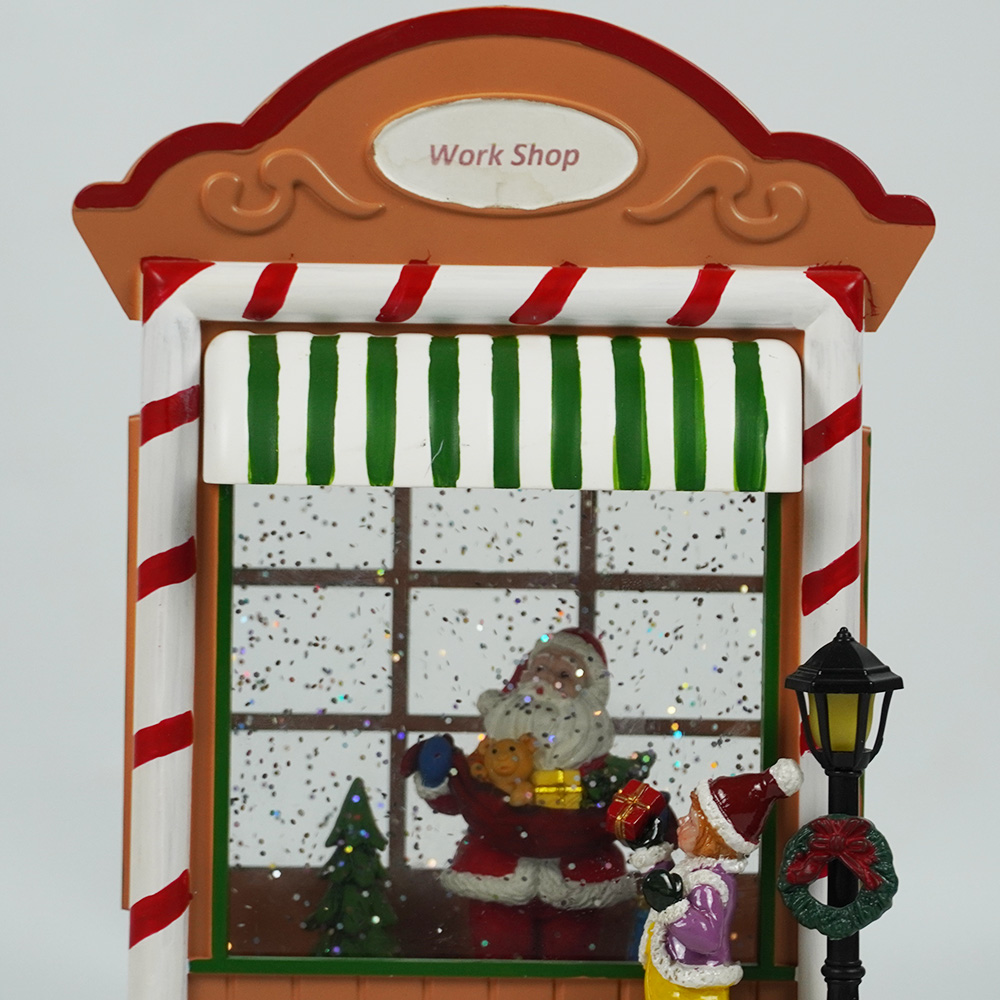 Wholesale navidad water spinning Led Illuminated Santa work shop musical Christmas Lantern snow globe |