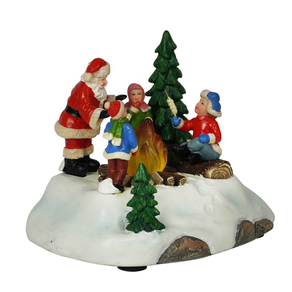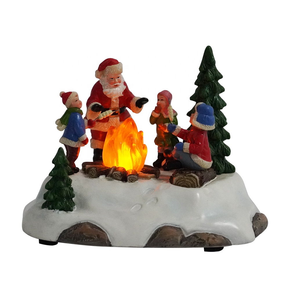 Wholesale noel tabletop Resin Santa Claus Campfire Xmas scene Illuminated Christmas decoration |