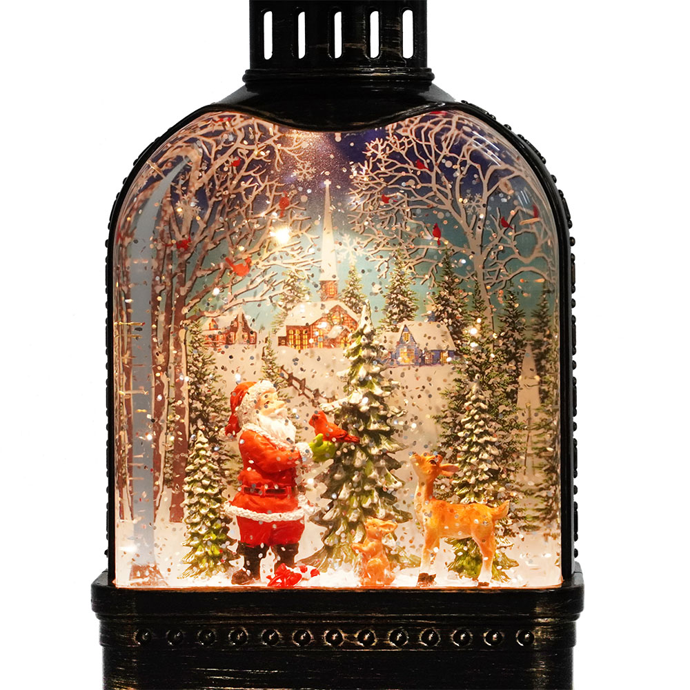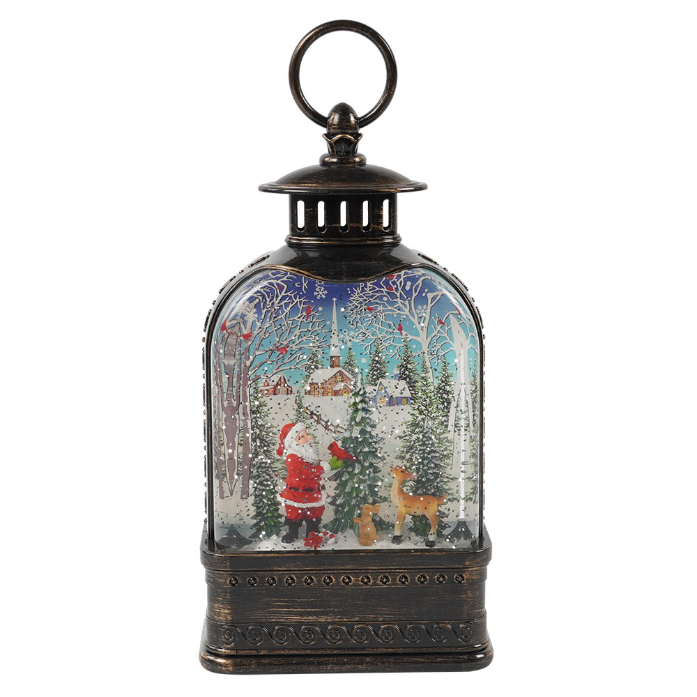 Wholesale noel Xmas Santa and reindeer village scene Led glitter water spinning lantern snow globe Christmas decoration |