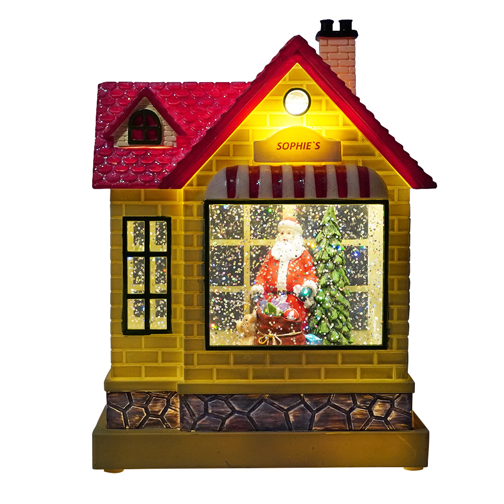 Wholesale plastic Water spinning Illuminated musical led Santa shop Christmas snow globe for home decor |