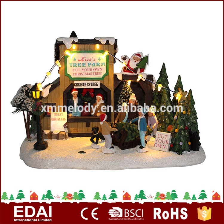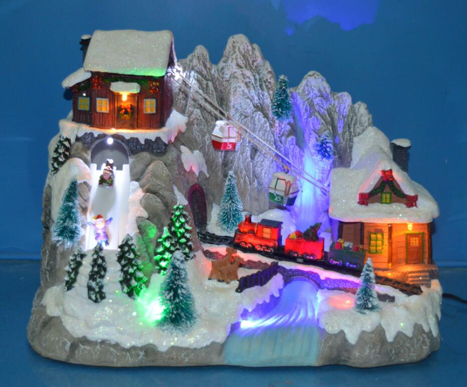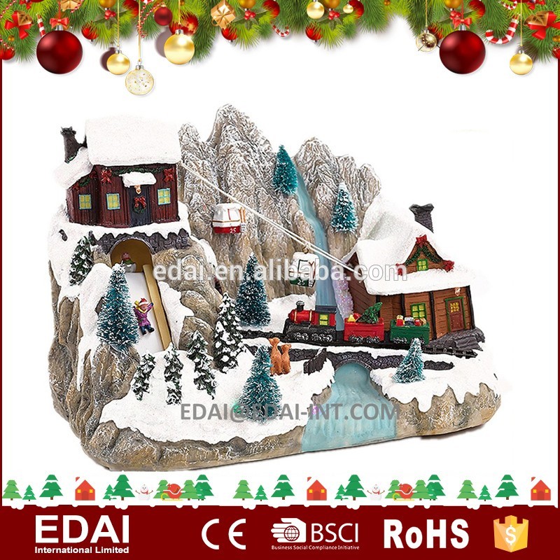 New Arrival polyresin Christmas village gondola with moving train and LED tree music decoration with adapter