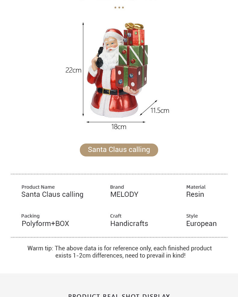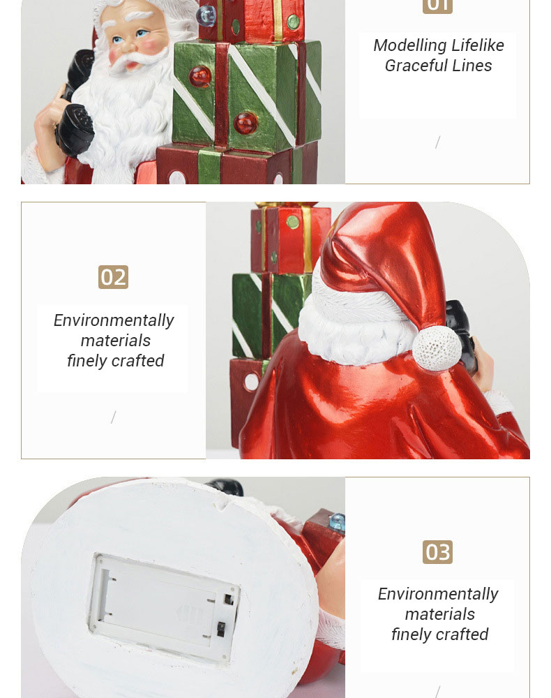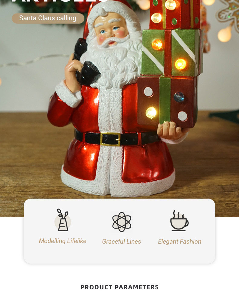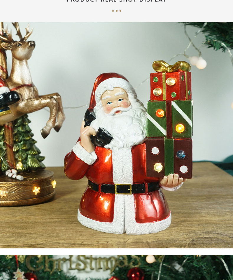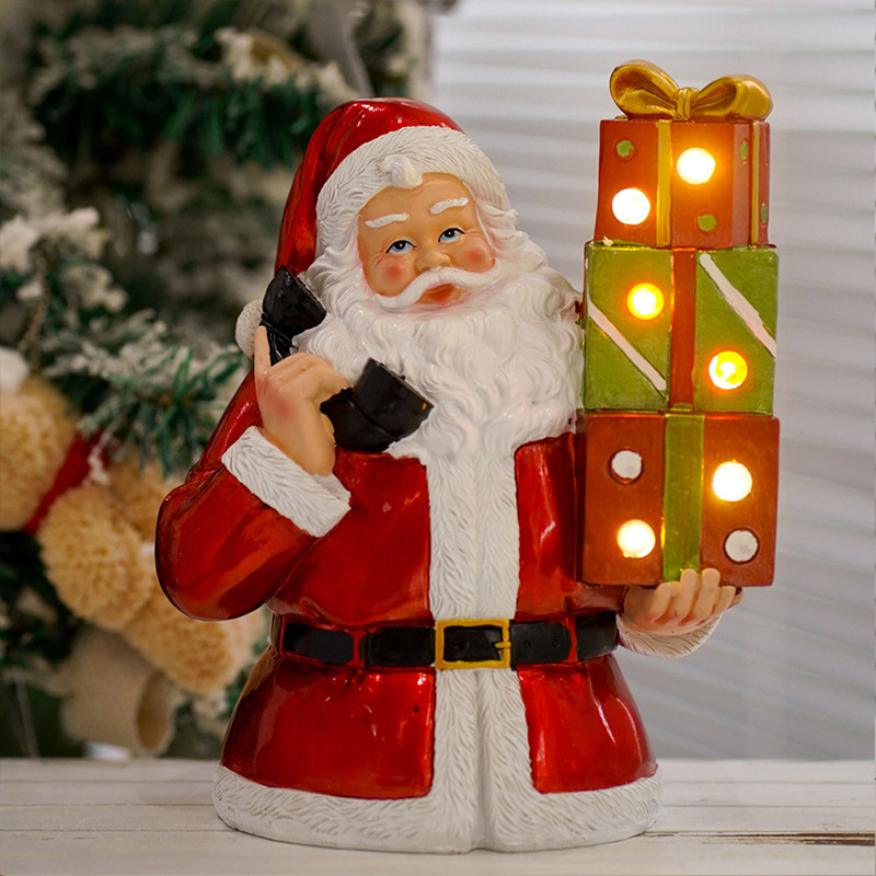Wholesale Resin Santa Claus ornament with light resin crafts desktop ornaments CHRISTMAS DECORATION 2024