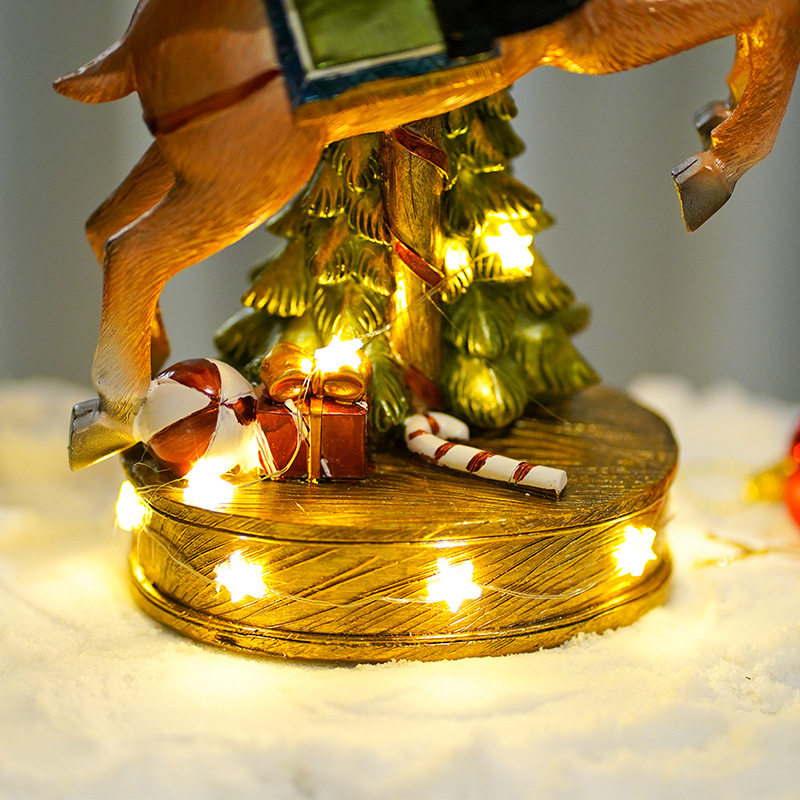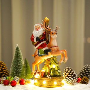 Wholesale Santa Claus with deer statue light-up music box Christmas decoration Christmas gifts resin ornaments decorations