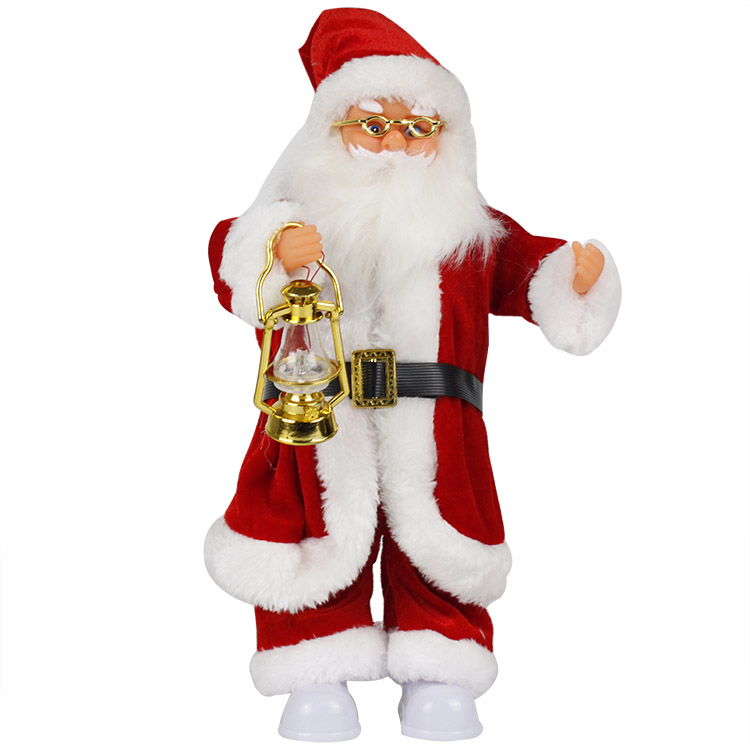 Wholesale seasonal decor gift noel Plastic Animated Standing Christmas Santa Claus figurine in Fabric Clothes |